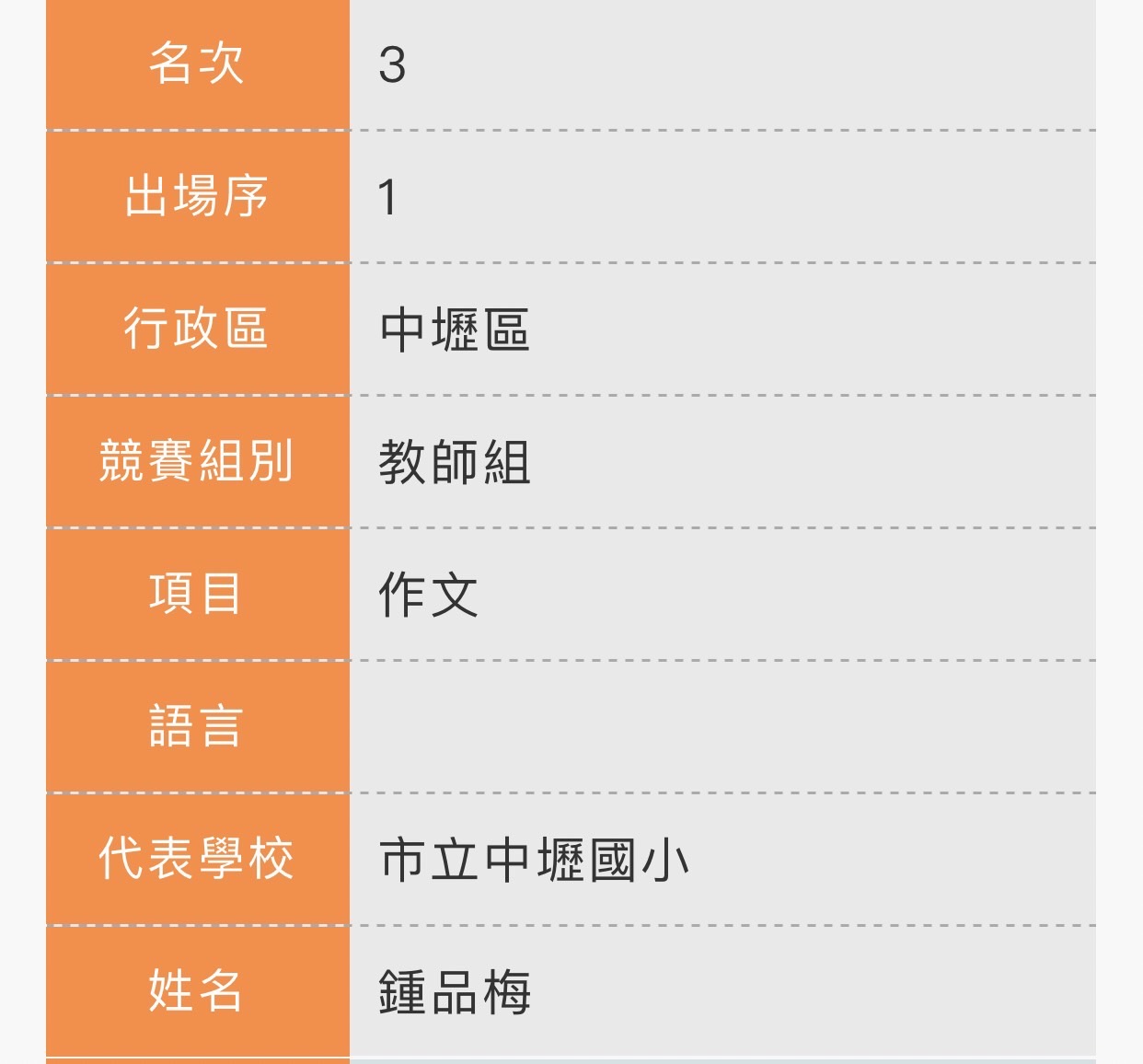 恭賀本校鍾品梅老師榮獲114年度桃園市語文競賽市決賽作文教師組第三名